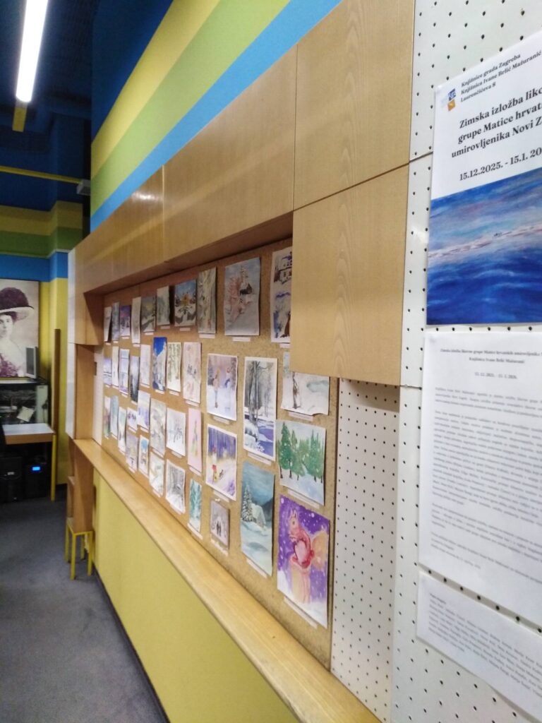 Matica hrvatskih umirovljenika Novi Zagreb održala je u prostorima Knjižnice Ivane Brlić-Mažuranić u Laurenčićevoj ulici 8 u Zagrebu izložbu likovnih radova svoje likovne sekcije pod vodstvom akademske slikarice.